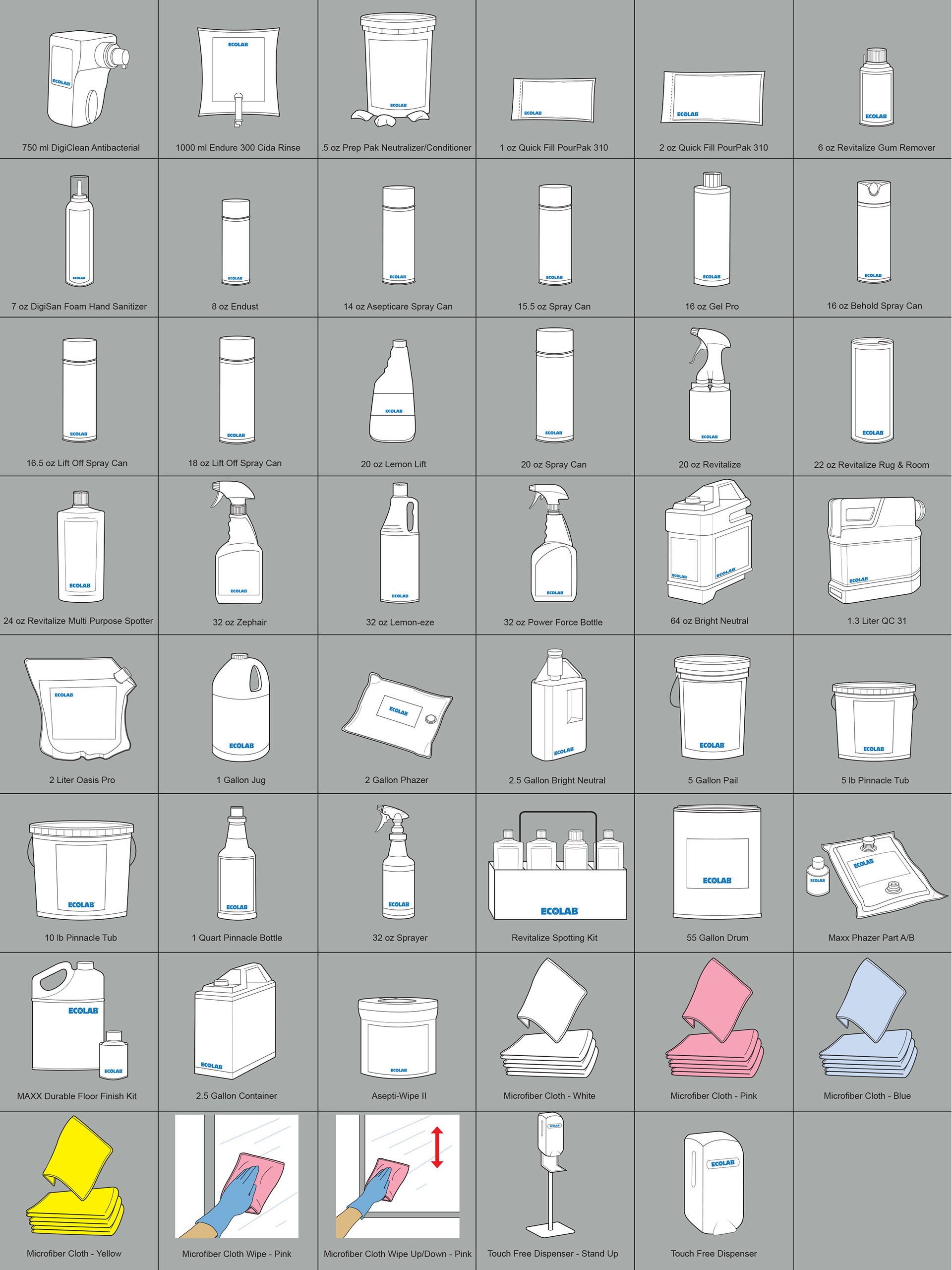 Created an extensive library of icons from the actual products to use in marketing material and internally at ECOLAB.