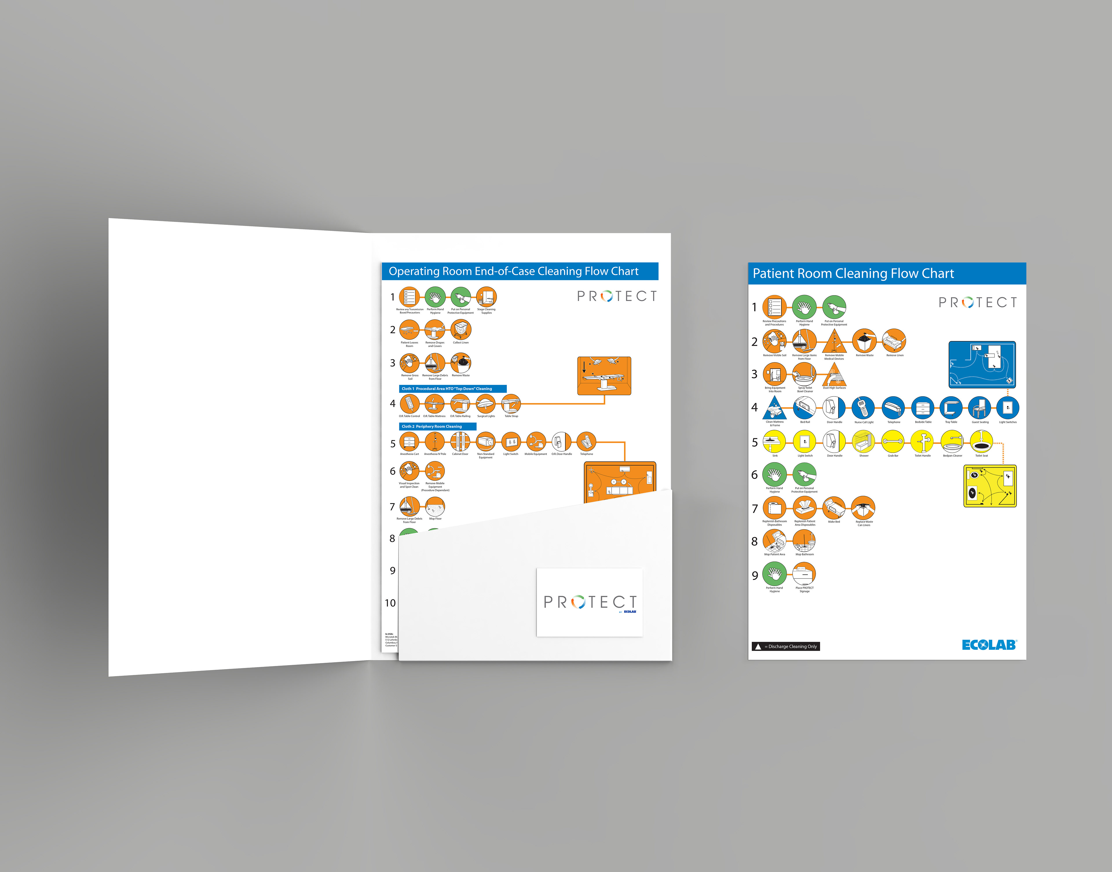 Worked with ECOLAB to design a new logo and create a series of room cleaning flow charts for their PROTECT program.