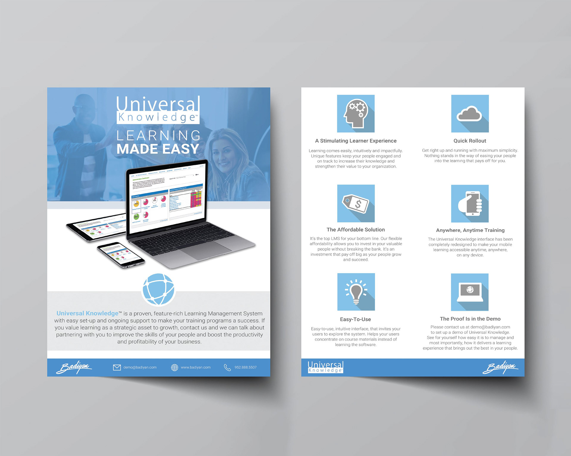 Created logo and marketing material for Badiyan Inc, for their custom LMS.